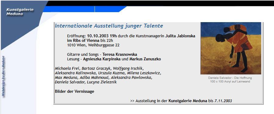Internationale Ausstellung 10.10 - 07.11.2003 - Junge Talente - Kunstgalerie Meduna